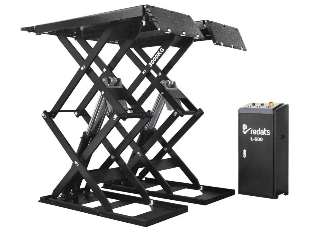 Портативный ножничный подъемник REDATS L-600 – это удобное и функциональное оборудование для профессионального обслуживания автомобилей, имеющее грузоподъемность 3 тонны и высоту подъема до 1850 мм. Высота основания 105 мм позволяет работать с низкими автомобилями, а две независимые платформы - поднимать авто под нужным углом для лучшего доступа к тормозам, выхлопной системе и подвеске. Подъемник работает на базе электродвигателя мощностью 2,2 кВт. Питание от трехфазной сети.