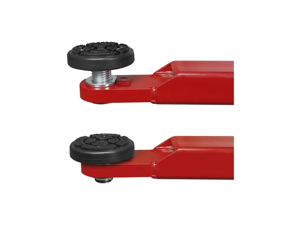 Подъемник имеет нижнюю синхронизацию и оснащен трехфазным двигателем мощностью 2,2 кВт, обеспечивающим скорость подъема около 55 с. Асимметричные телескопические лапы (размах передних – 620-880 мм, задних – 820-1260 мм) позволяют работать с авто с разной колесной базой, а минимальная высота лап 90 мм подходит для низких автомобилей. Благодаря автоматической разблокировке предохранительных замков, этот автомобильный подъемник с розеткой экономит время и усилия оператора, а ряд систем безопасности делает его надежным и долговечным.