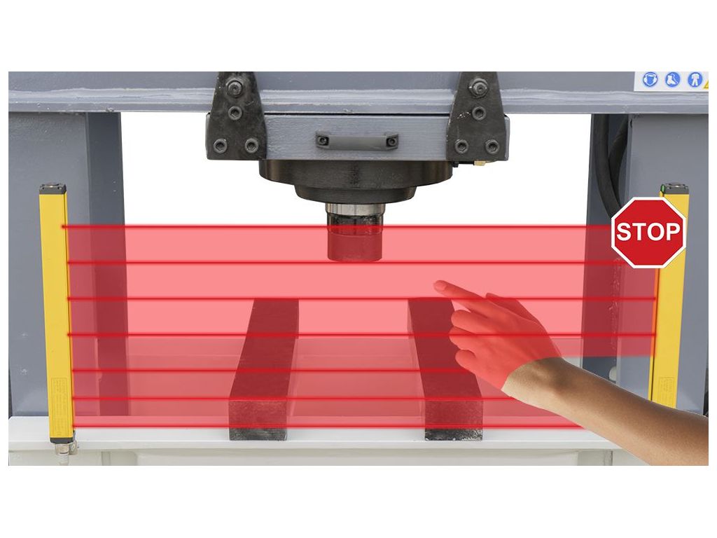 - Системы безопасности: Пресс оснащен световым защитным барьером типа 4, который создает световую завесу для защиты оператора и минимизации рисков несчастных случаев. Эта система соответствует высочайшим стандартам безопасности.