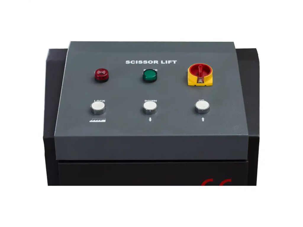 Для облегчения заезда автомобиля на платформу есть рифленые пандусы шириной 635 мм. Длина платформы без пандуса – 1450 мм, с пандусом – 2050 мм. В комплект поставки входят 4 резиновые накладки для защиты порогов авто и предотвращения его смещения при подъеме. Этот ножничный подъемник имеет простую панель управления с тремя кнопками (подъем, опускание, фиксация в выбранном положении), поэтому работать с ним очень удобно.