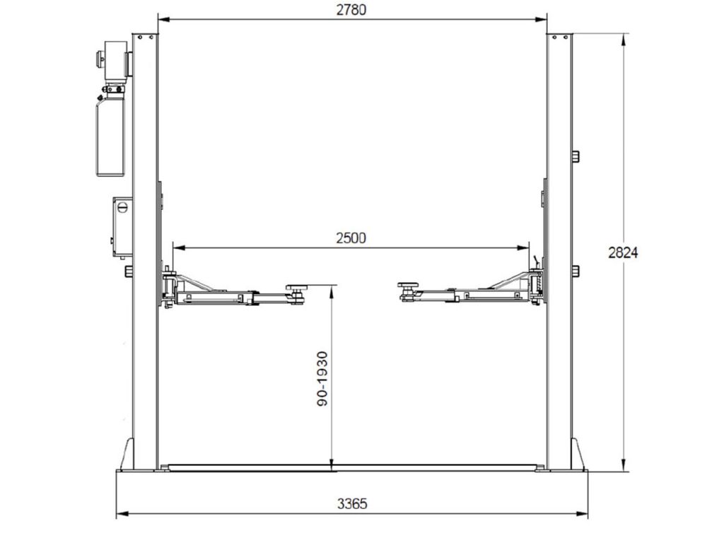 Подъем занимает всего 55 с, опускание – 25 с. Электродвигатель мощностью 2,2 кВт и простая панель управления (подъем, опускание, опускание в нижнее положение) делают этот автоподъемник для СТО очень удобным и легким в использовании.