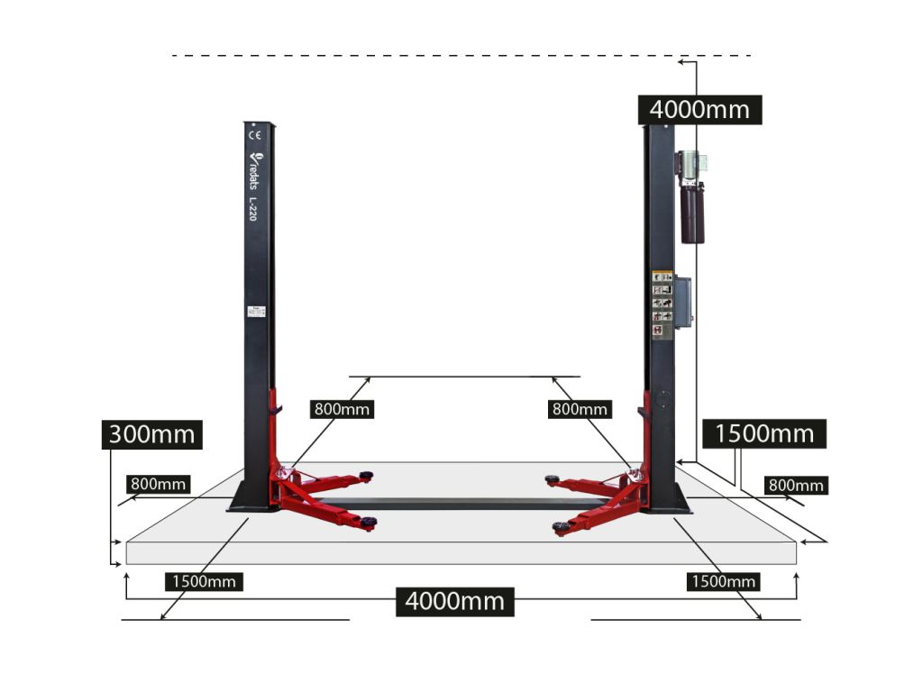 Автоматический двухстоечный подъемник REDATS L-220 с грузоподъемностью 4 тонны, прочной, надежной конструкцией и быстрым подъемом и опусканием будет отличным выбором для автосервисов с большим потоком автомобилей. Подходит для обслуживания не только легковых автомобилей, но и микроавтобусов и коммерческой техники. Нижняя балка высотой 9 см позволяет удобно работать с низкими авто. Максимальная высота подъема составляет 193 см. Максимальная ширина автомобиля – 2500 мм. Складные ленты подъемника позволяют эффективно обслуживать длинные автомобили.