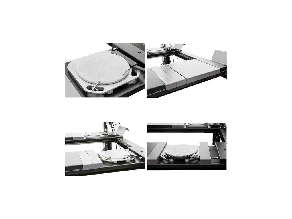 - Поворотные круги - позволяют колесам передней оси свободно поворачиваться, что необходимо для точного измерения углов развала и схождения