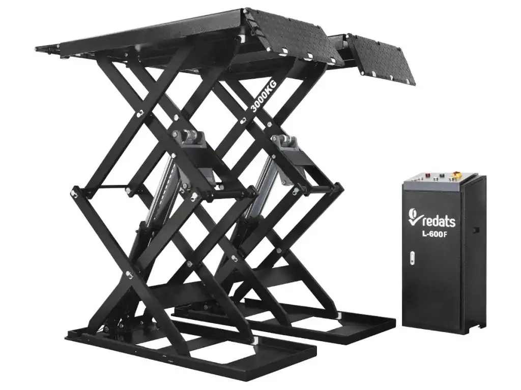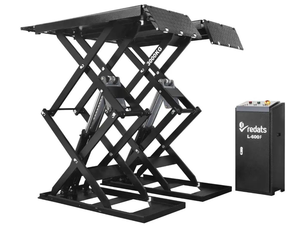 Подъемник ножничный REDATS L-600F с грузоподъемностью 3 тонны и простым управлением обеспечивает удобное обслуживание легковых автомобилей и легкой коммерческой техники, что делает его выгодным приобретением для автосервисов. Высота платформы в опущенном состоянии составляет 105 мм, что позволяет эффективно работать с низкими автомобилями. Максимальная высота подъема – 1850 мм. Оснащен двигателем мощностью 2,2 кВт с питанием от сети 230 В.