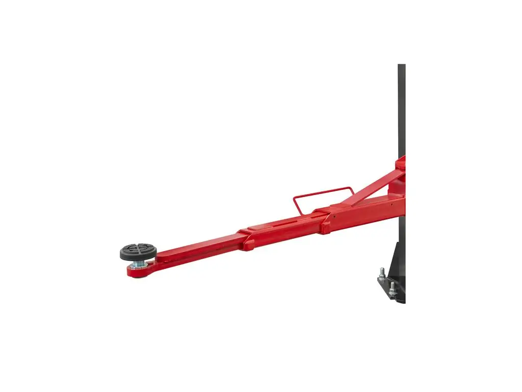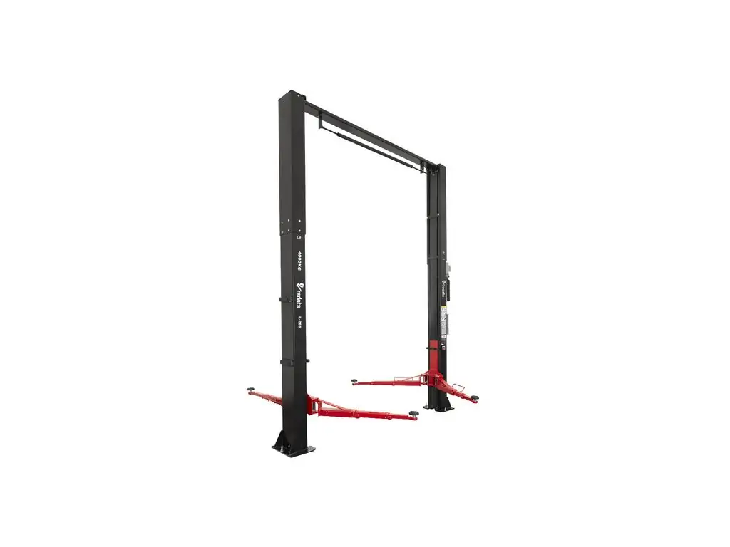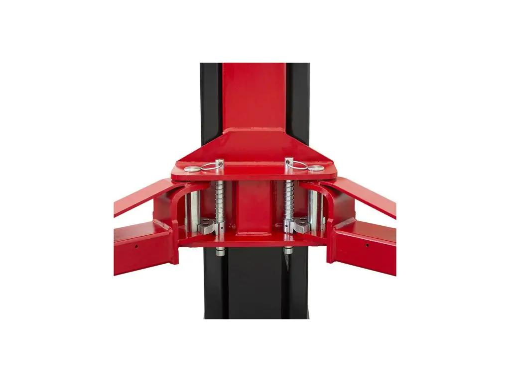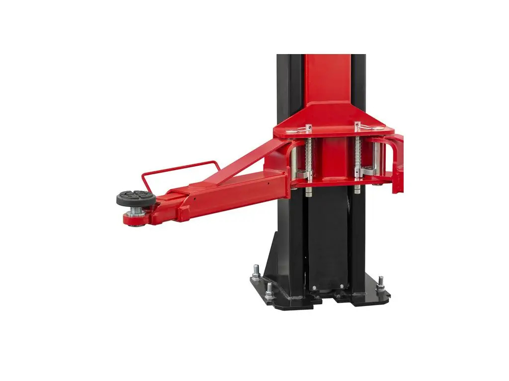 Телескопические, асимметричные лапы с размахом 700-1330 мм позволяют удобно подхватывать разные по длине автомобили и облегчают открывание дверей. При максимальном поднятии лап на высоту 1945 мм просвет между лапами и верхней балкой составляет 2405 мм, что позволяет использовать этот подъемник для высоких автомобилей. Отсутствие нижней балки между колоннами дает возможность свободно перемещать инструментальные тележки, подкатные домкраты и другое оборудование по всей рабочей зоне. Автоматическая разблокировка предохранительных замков экономит время и уменьшает нагрузку на оператора. Из-за особенностей конструкции, этот подъемник 4 тонны с верхней балкой требует значительной высоты потолка в помещении и надежного бетонного фундамента толщиной не менее 30 см.