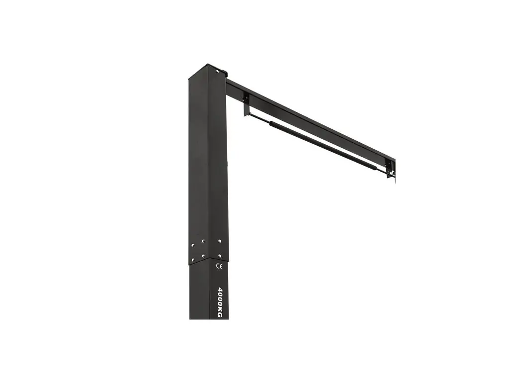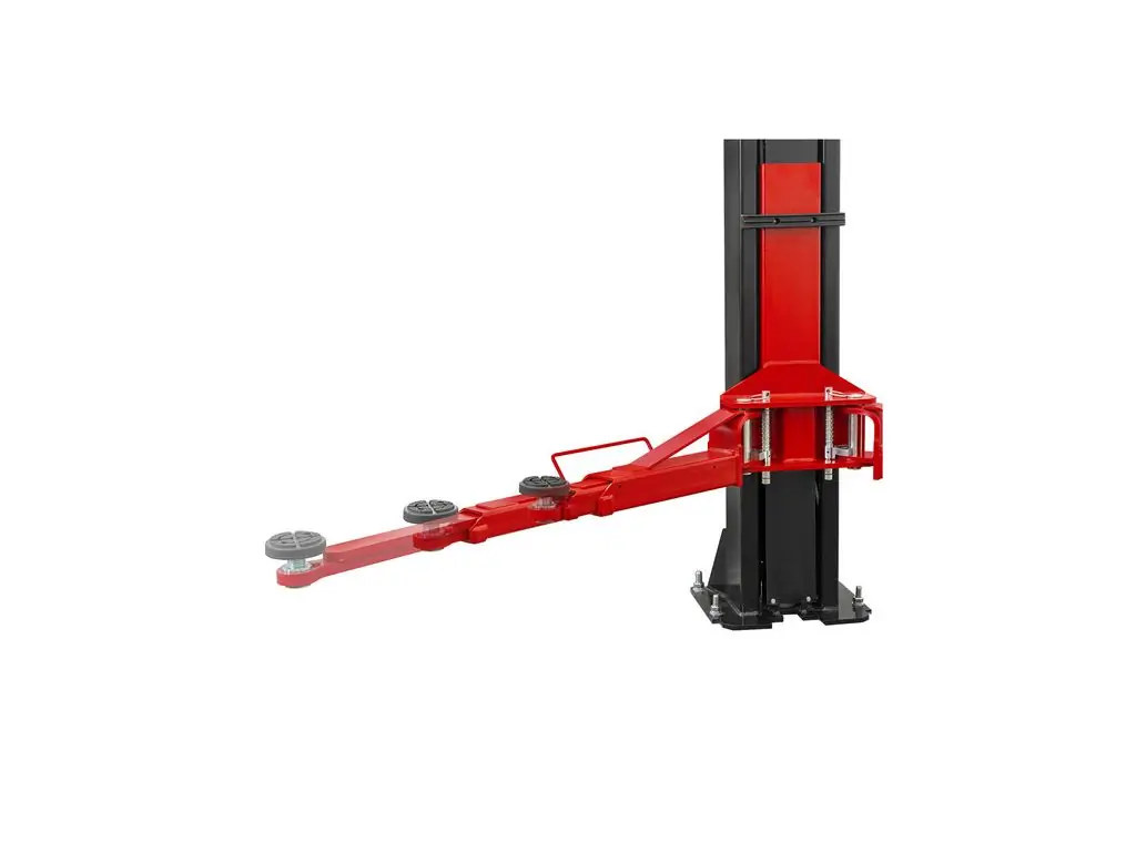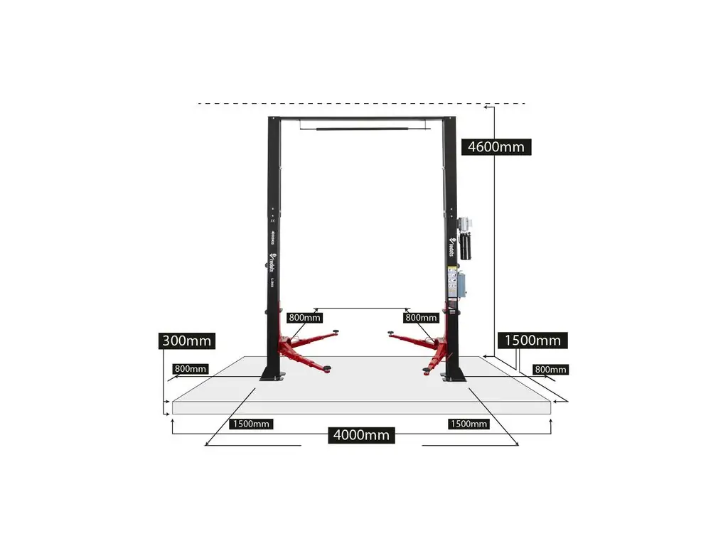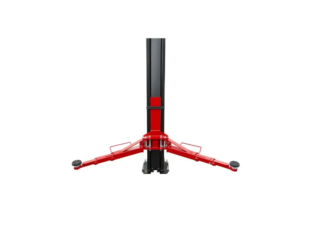 Телескопические, асимметричные лапы с размахом 700-1330 мм позволяют удобно подхватывать разные по длине автомобили и облегчают открывание дверей. При максимальном поднятии лап на высоту 1945 мм просвет между лапами и верхней балкой составляет 2405 мм, что позволяет использовать этот подъемник для высоких автомобилей. Отсутствие нижней балки между колоннами дает возможность свободно перемещать инструментальные тележки, подкатные домкраты и другое оборудование по всей рабочей зоне. Автоматическая разблокировка предохранительных замков экономит время и уменьшает нагрузку на оператора. Из-за особенностей конструкции, этот подъемник 4 тонны с верхней балкой требует значительной высоты потолка в помещении и надежного бетонного фундамента толщиной не менее 30 см.