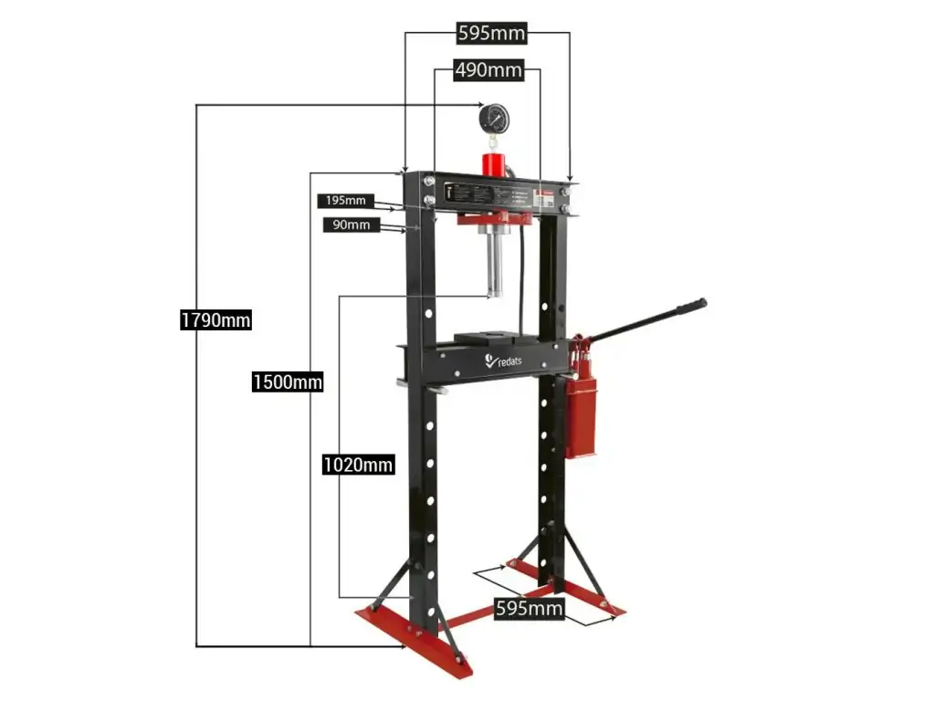 Пресс гидравлический с двойным насосом 20 т REDATS H-370 – это эффективное оборудование для автосервисов, ремонтных и монтажных мастерских, которое позволяет быстро и качественно выполнять прессование, формовку, штамповку, гибку и рихтовку металлических конструкций. Достигает силы давления 20 тонн. Опорный стол можно установить на 8 положений в диапазоне от 0 до 1020 мм, что позволяет адаптировать пресс к различным задачам.