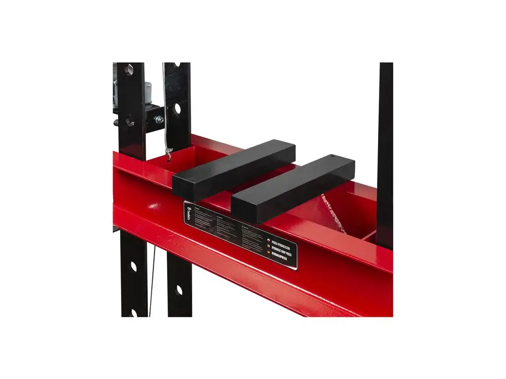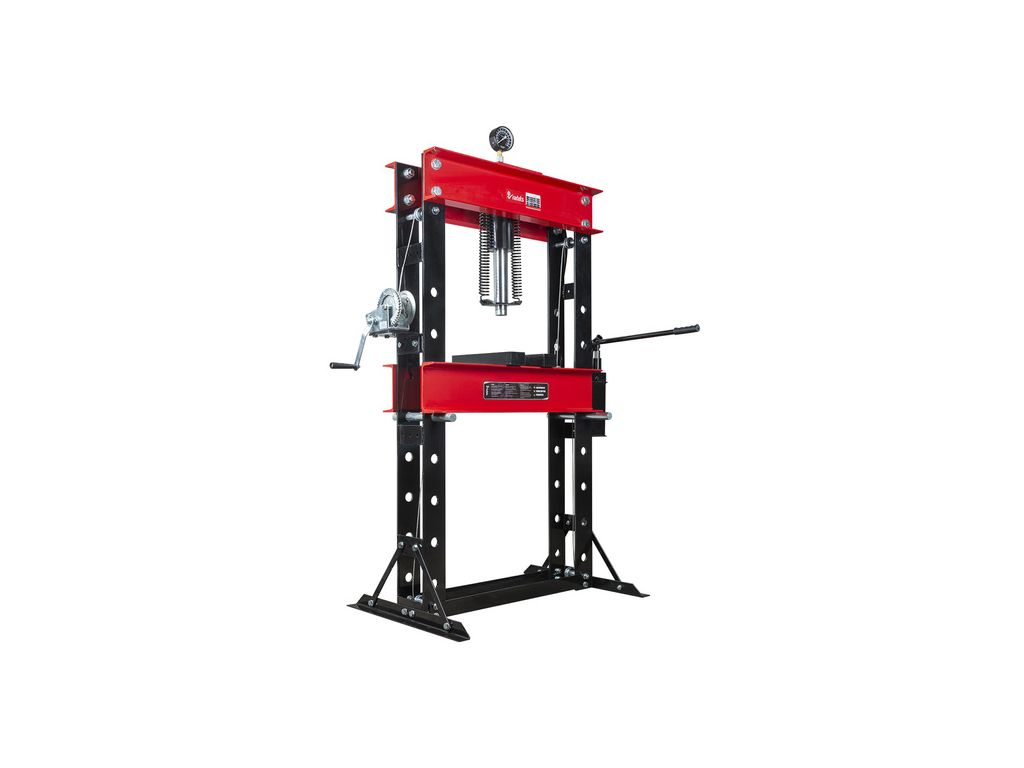 Пресс оснащен двойным насосом с 2 режимами работы – быстрым и медленным ходом, что позволяет максимально контролировать процесс обработки. Опорный стол устанавливается в 8 положений в диапазоне 100-1000 мм, благодаря чему инструмент можно максимально подстроить под конкретную задачу. Для контроля усилия есть специальный манометр. Прочная конструкция с усиленным стальным каркасом делает этот гидравлический цеховой пресс очень надежным и долговечным.