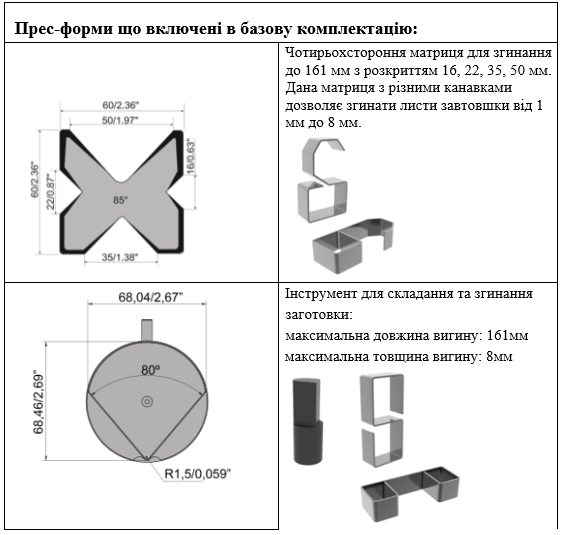 Большое количество пресс-форм, которыми может быть укомплектован станок, позволяет выполнять различные операции с различными материалами и различными профилями.