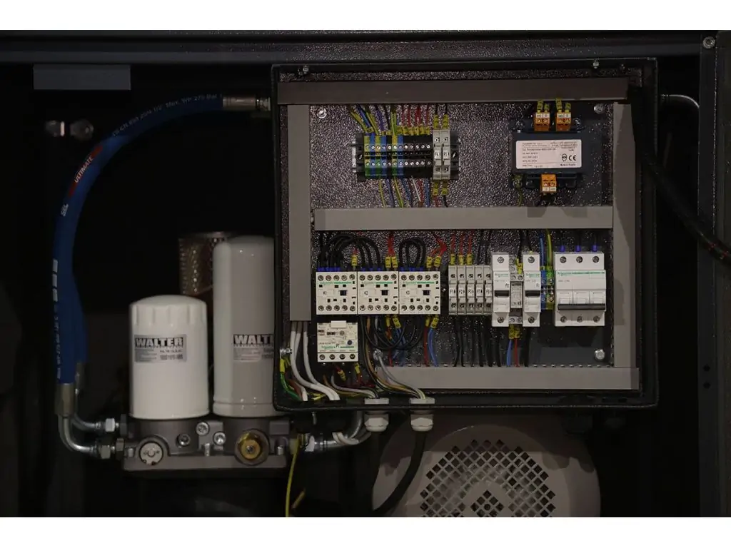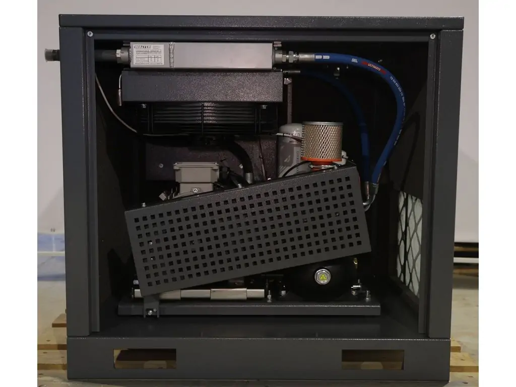 Оснащен надежным двигателем мощностью 5,5 кВт. Тихая работа и минимум вибраций благодаря шумоизолированному корпусу. Автоматическая система управления позволяет удобно отслеживать и корректировать параметры работы. Изготовленный из качественных компонентов европейского происхождения, этот компрессор характеризуется чрезвычайной надежностью и длительным сроком службы.