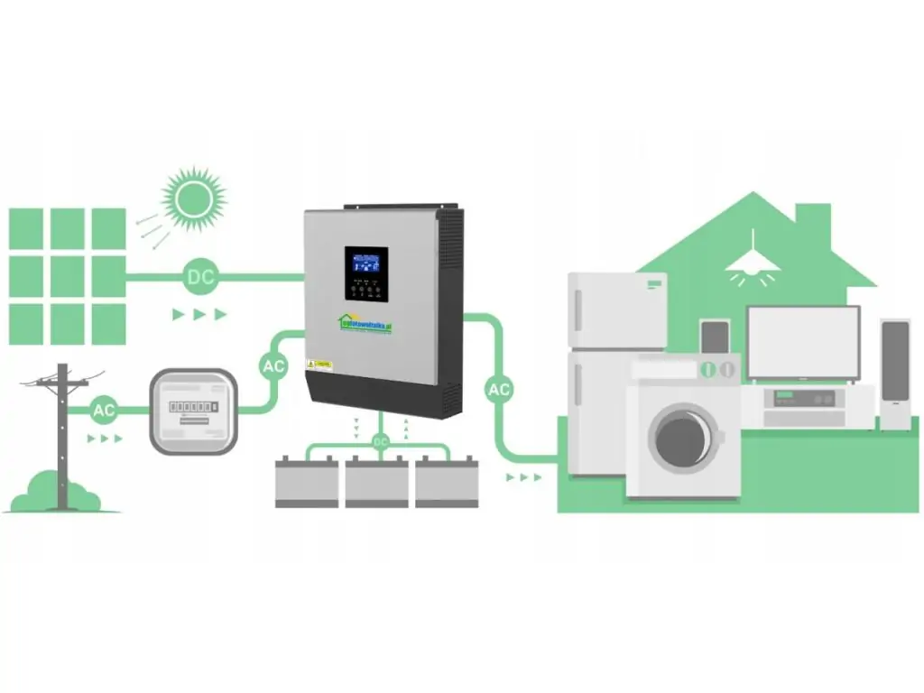 - Многофункциональность: работает как инвертор переменного тока и зарядное устройство постоянного тока, объединяет функции сетевого зарядного устройства 230 В и солнечного контроллера заряда