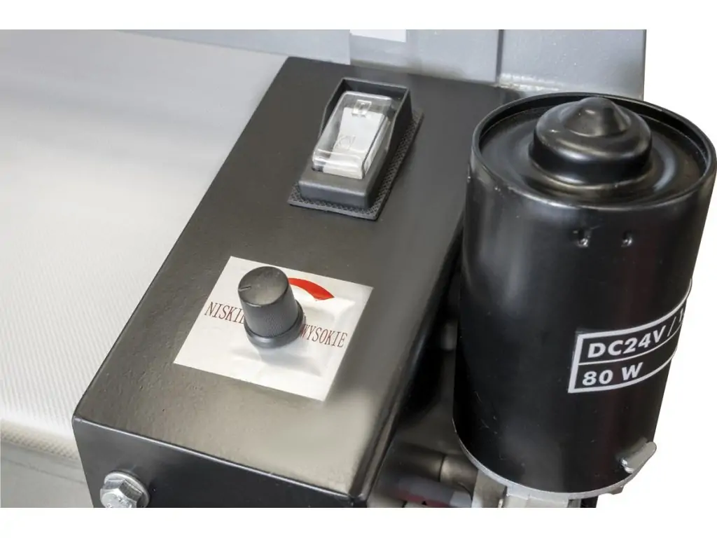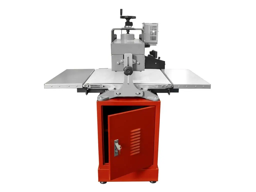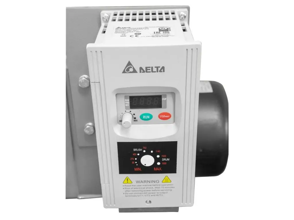 Жесткая конструкция с чугунным основанием и кронштейном крепления консоли обеспечивает высокую точность и повторяемость. Благодаря этому станок будет эффективен для серийного производства. Скорость подачи заготовки регулируется потенциометром в диапазоне 0-3 м/мин. Натяжение шлифовальной ленты можно регулировать с помощью пружинной системы. Рабочий стол имеет расширение на входе и выходе. В опорной основе имеется шкаф для инструментов и аксессуаров.