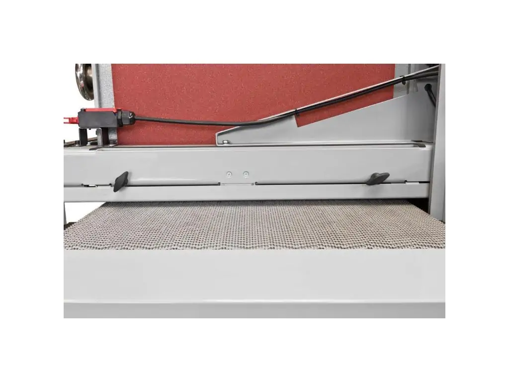 Уровень шлифования регулируется подъёмом конвейерного стола за счёт вращения большой рукоятки маховика.