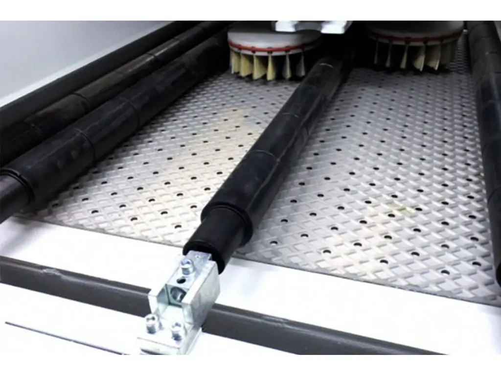 Вакуумный конвейерный стол щеточно-шлифовальной машины гарантирует, что детали, подлежащие шлифовке, останутся стабильными и не скользят по ленте. Наилучших результатов мы достигаем с помощью вакуумной системы, благодаря которой мелкие детали не перемещаются шлифовальными щетками и их можно правильно отшлифовать.