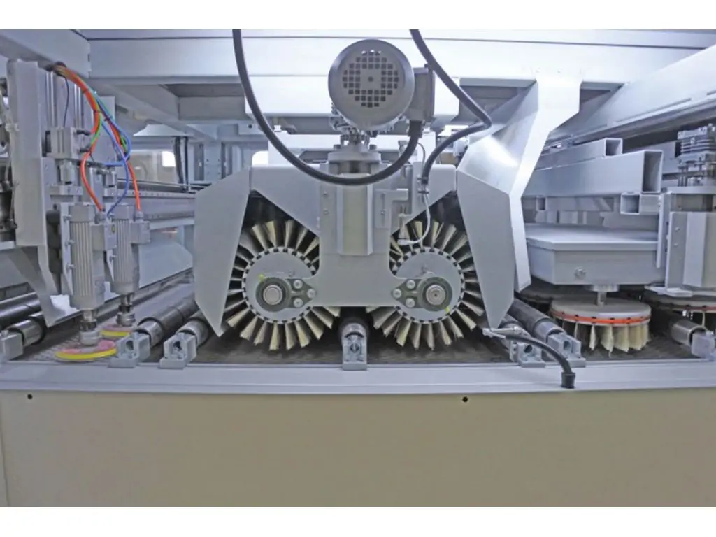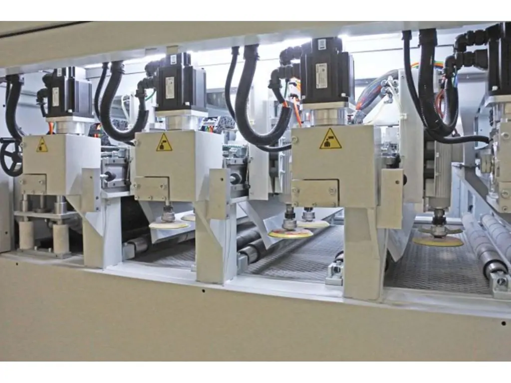 Оборудование имеет 8 вращающихся орбитальных вибрационных шлифовальных двигателя с автоматической регулировкой силы давления и расстояния. Эти независимые рабочие агрегаты обеспечивают высокое качество обработки поверхности, учитывая края продукта и разницу в толщине на поверхности.