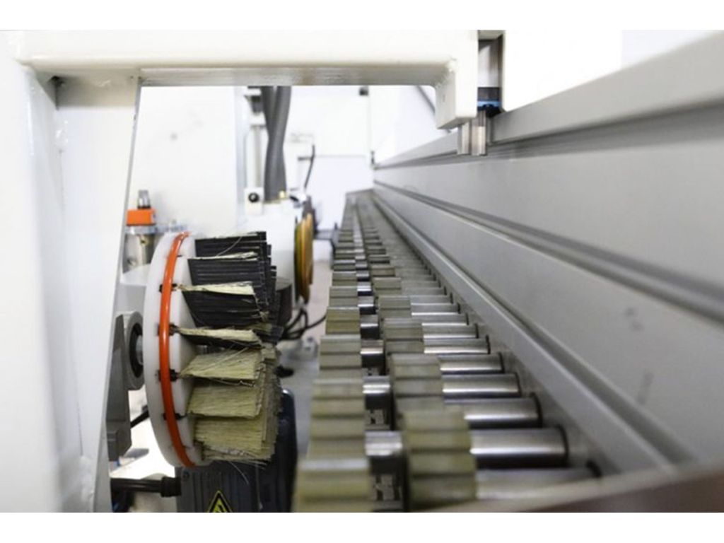 Щеточные шлифовальные машины с регулируемой высотой, расстоянием и скоростью вращения на автоматическом кромкошлифовальном станке шлифуют края и углы по радиусу.