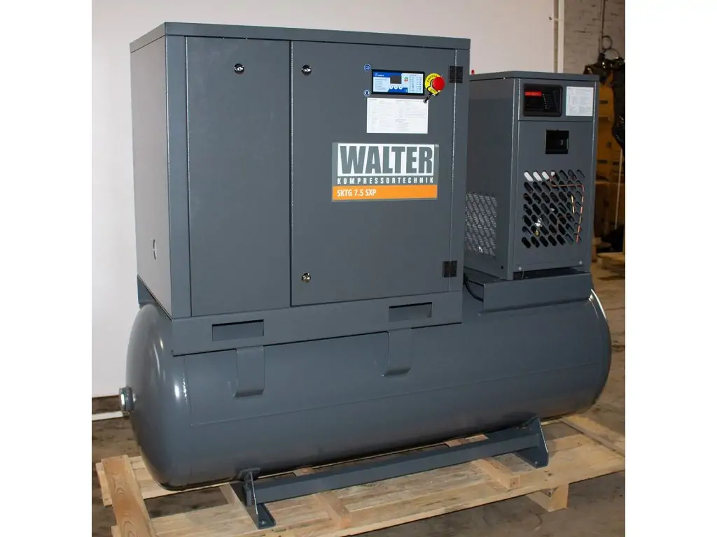 Винтовой компрессор с ременным приводом WALTER SKTG 7,5/500 SXP COMBO – незаменимое устройство для любых работ со сжатым воздухом. Мощный и крепкий компрессор предназначен для профессионального и промышленного применения.