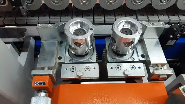 При помощи цифрового счетчика регулируется прижим на разную толщину кромочного материала.