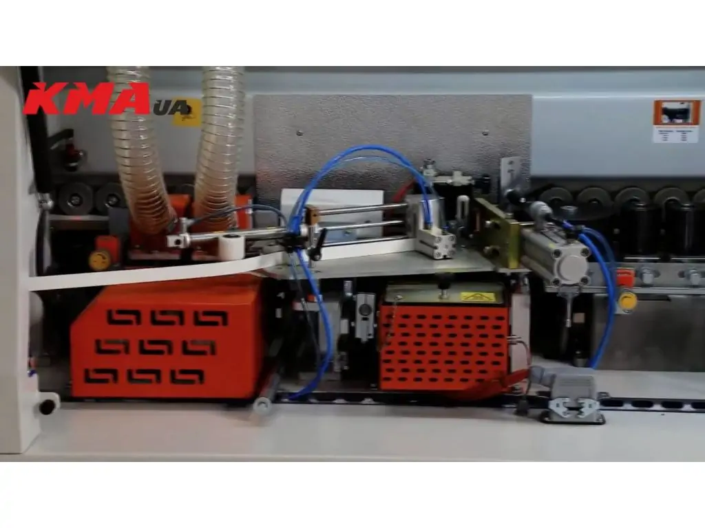Протяжный ролик для автоматической загрузки кромки при подаче панели. Гильотина для автоматической обрезки кромки в рулонах.