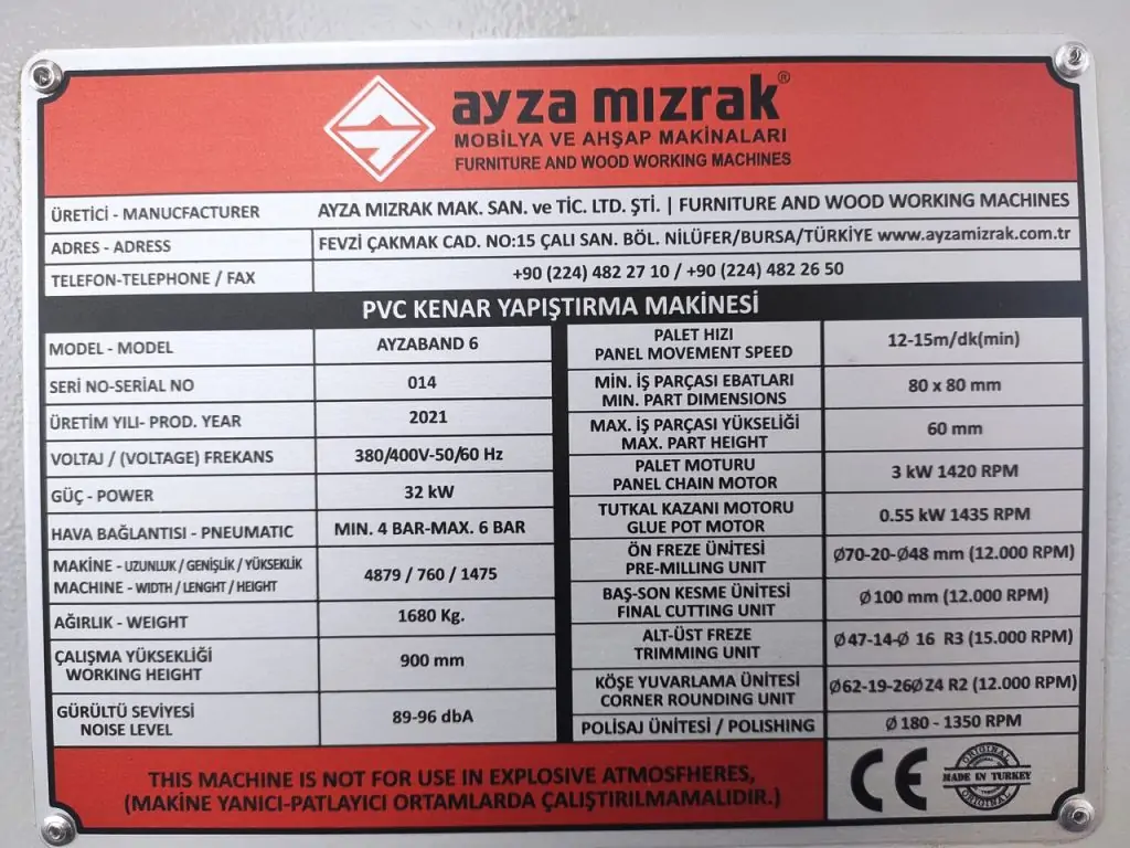 Компания Ayza Mizrak, основанная на турецком рынке, прославилась своими высококачественными решениями в сфере обработки материалов, в частности в сфере плитных материалов. Разрабатывая кромкооблицовочные станки AyzaBand, компания использует передовые технологии и инженерные решения, которые являются результатом сотрудничества с ведущими европейскими производителями оборудования. Это позволяет им создавать станки, отвечающие самым высоким стандартам эффективности, качества и надежности.