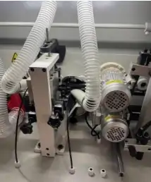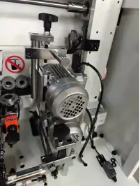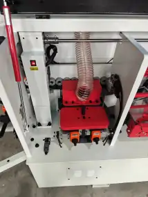 Торцовочный узел отвечает за точную обрезку передних и задних свесов кромки (т.е. по длине). Два высокоскоростных двигателя (по одному на каждый торец) позволяют обрезать свес за один проход станка, что обеспечивает максимальную точность и скорость обработки.
