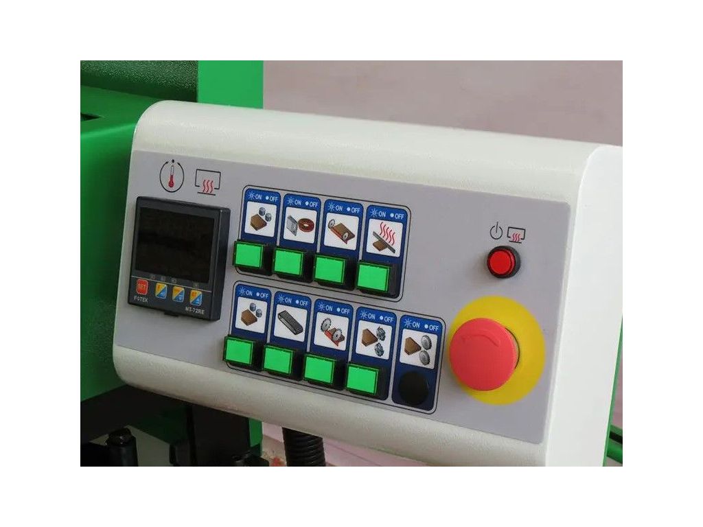 Станок имеет предварительное фрезерование и режет шпон автоматически, а также имеется фрезерный узел вверх-вниз с обеих сторон заготовки. 20 длинных валков эффективно и быстро подают материал.