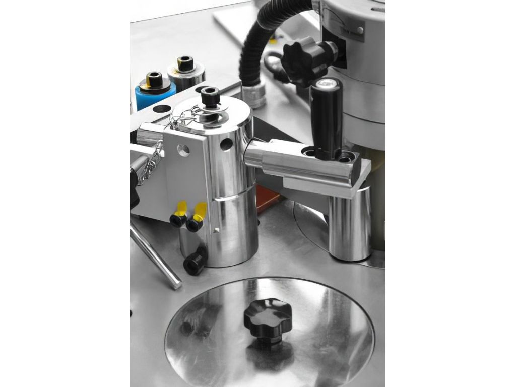 - оснащён двумя клеенаносящими валами: один вал предназначен для нанесения клея расплава на кромочный материал, другой вал для нанесения клея расплава на кромку заготовки.