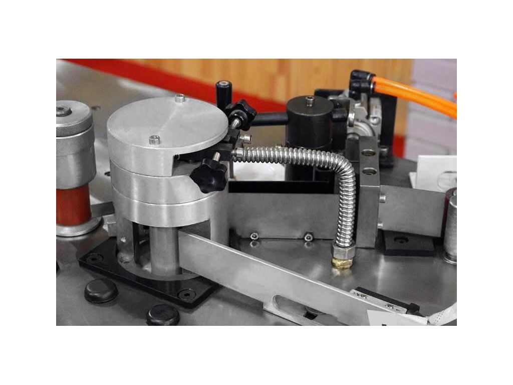 Два вала для нанесения клея гарантируют надежное приклеивание кромки, а винтовая настройка количества клея на каждом из валов обеспечивают аккуратность работы. Станок удобный в использовании благодаря возможности управления с пульта, где можно настроить температуру клея, скорость его подачи и другие параметры поклейки. Рабочий стол оснащен пластиковыми накладками, что позволяет работать без использования шаблонов и подложек под детали.