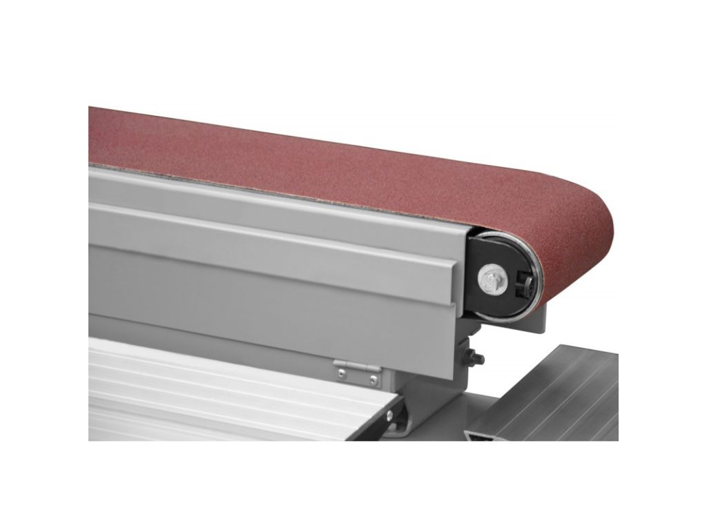 - натяжное устройство обеспечивает равномерное натяжение шлифовальной ленты