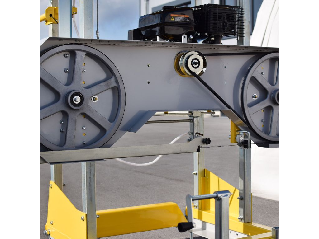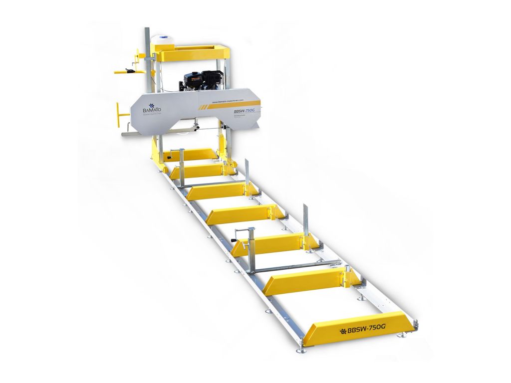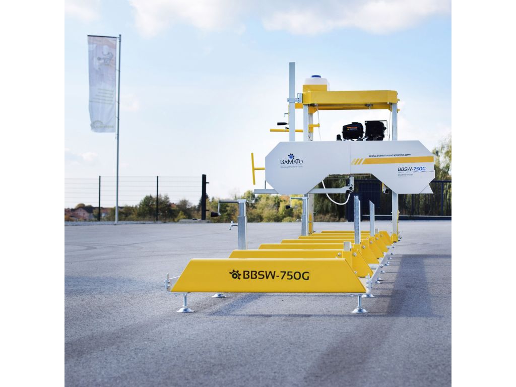 Новый ленточнопильный станок BAMATO BBSW-750G  — настоящая мощная машина, оснащена бензиновым двигателем мощностью 9,0 кВт с электростартером. Сбалансированные и прочные ведущие колеса из чугуна обеспечивают идеальный результат резки. Этот станок идеально подходит для точного распила мягкой, твердой и сухой древесины.