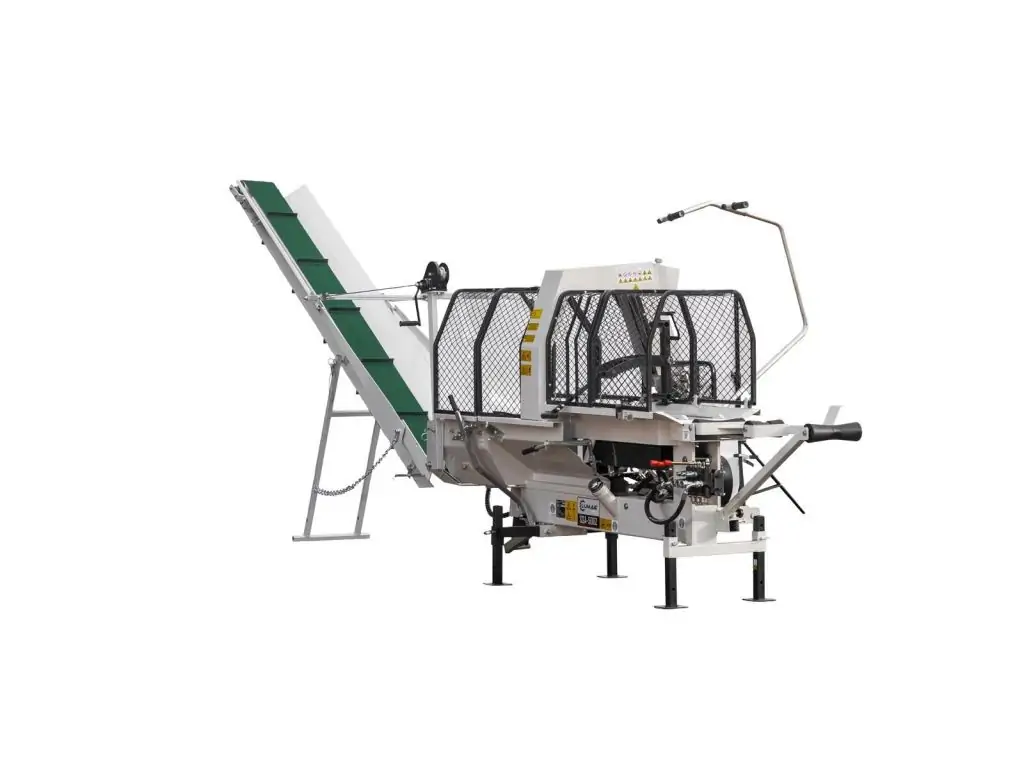 Станок Lumag SSA 500Z в своей базовой комплектации имеет конвейерную ленту длиной 3,2 м, которая транспортирует расколотые куски дерева непосредственно в прицеп или в определенное место.