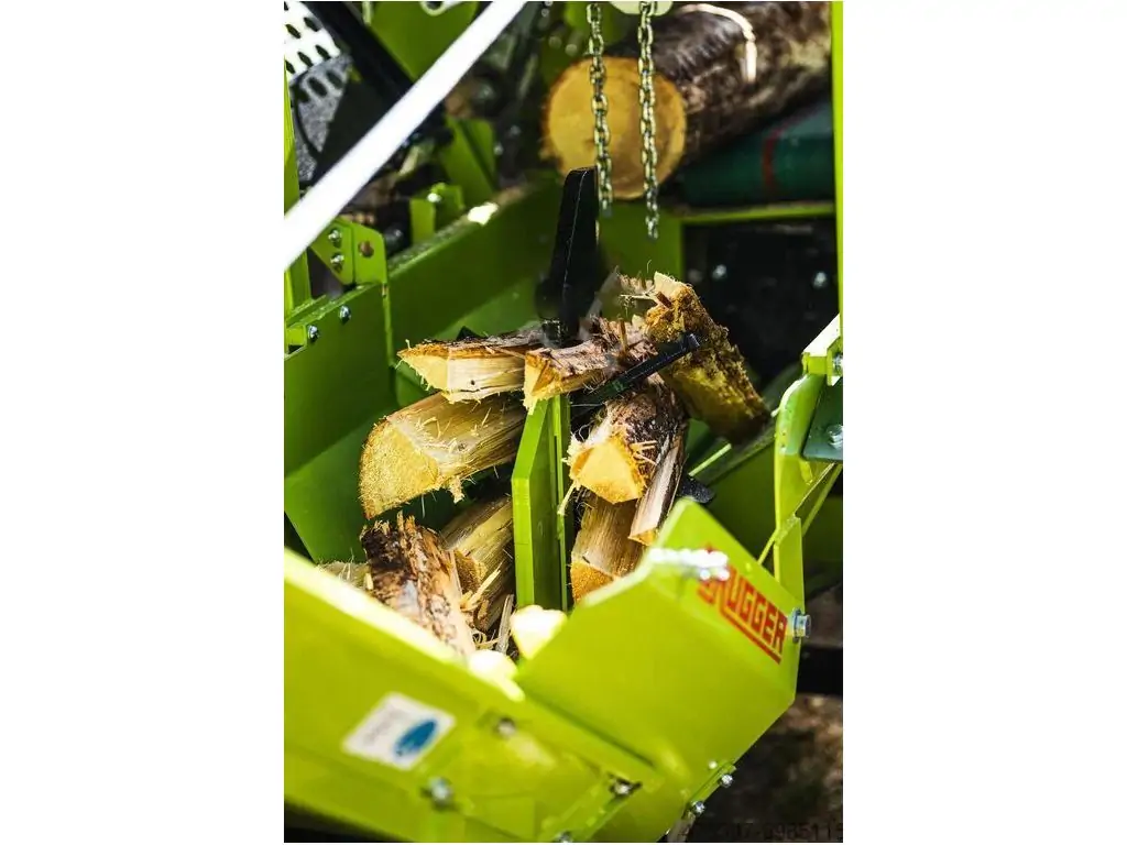 Длину дров можно плавно регулировать до 55 см. Раскалывающий клин можно вручную регулировать в различных положениях с помощью рычага, позволяя раскалывать в 2, 4 или даже 6 направлениях, в зависимости от толщины древесины.