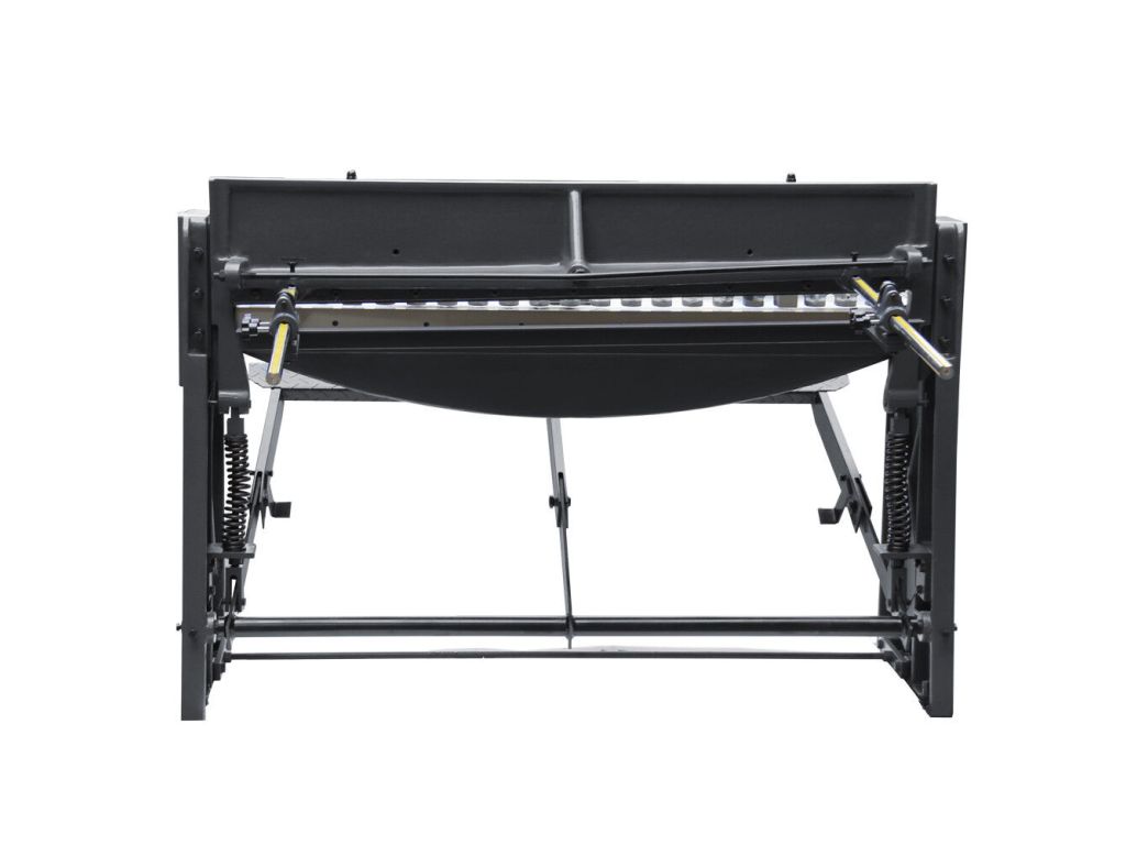 Автоматическая прижимная балка надежно фиксирует лист перед резкой и укомплектована полимерными накладками для предотвращения повреждения материала. Движение режущей балки осуществляется с помощью педального механизма, а ее подъем автоматический за счет пружин. Упоры и линейки по обоим бокам рабочего стола позволяют максимально точно позиционировать заготовку, а ограничитель глубины с миллиметровой шкалой и бесступенчатой регулировкой упора до 840 мм обеспечивает точную установку нужного размера детали. Эти ручные гильотинные ножницы имеют простую, жесткую конструкцию из качественных материалов, что обеспечивает их надежность и долговечность.