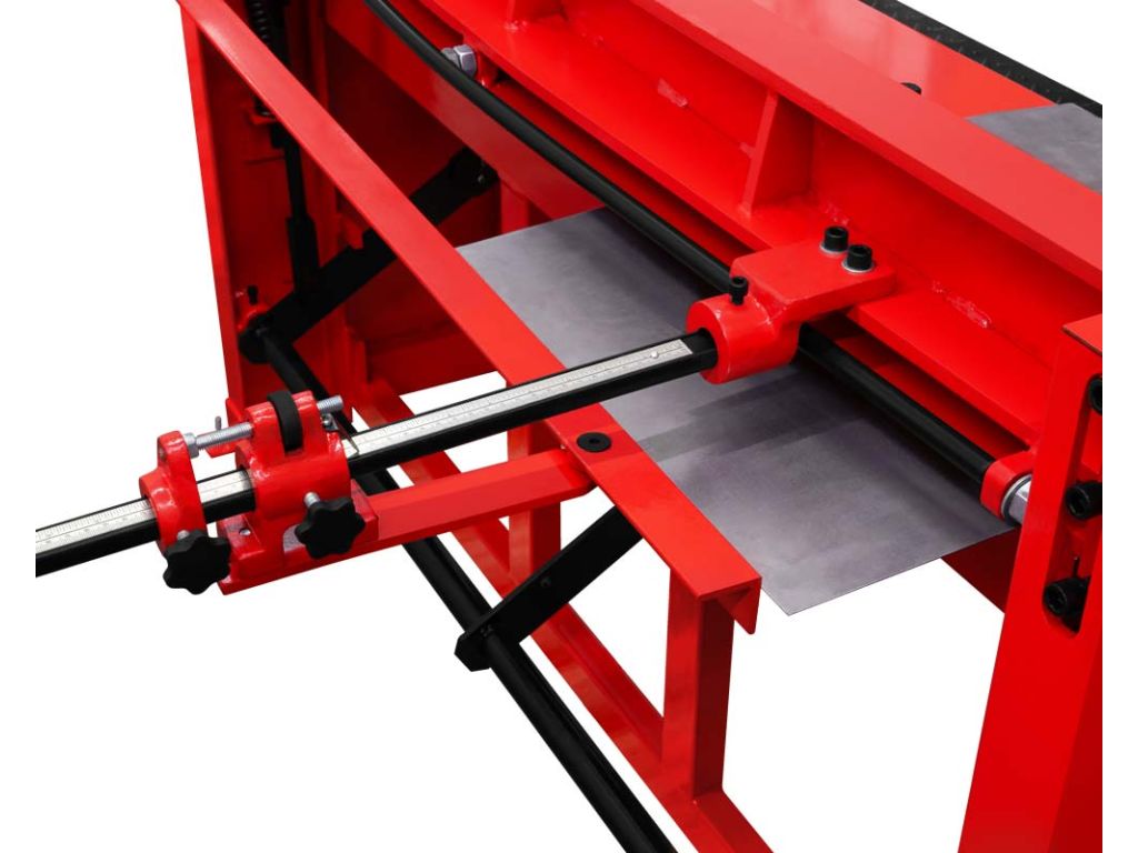 Фиксация листов производится с помощью автоматического прижимного устройства, задний упор помогает точно позиционировать заготовку. Есть ограничитель глубины подачи до 900 мм с миллиметровой шкалой. Конструкция обладает высокой жесткостью и прочностью, что позволяет работать с максимальной точностью и гарантирует большой рабочий ресурс оборудования. Модель прошла сертификацию по стандартам CE. Такой механический гильотинный резак будет эффективен для небольших мастерских и производств.