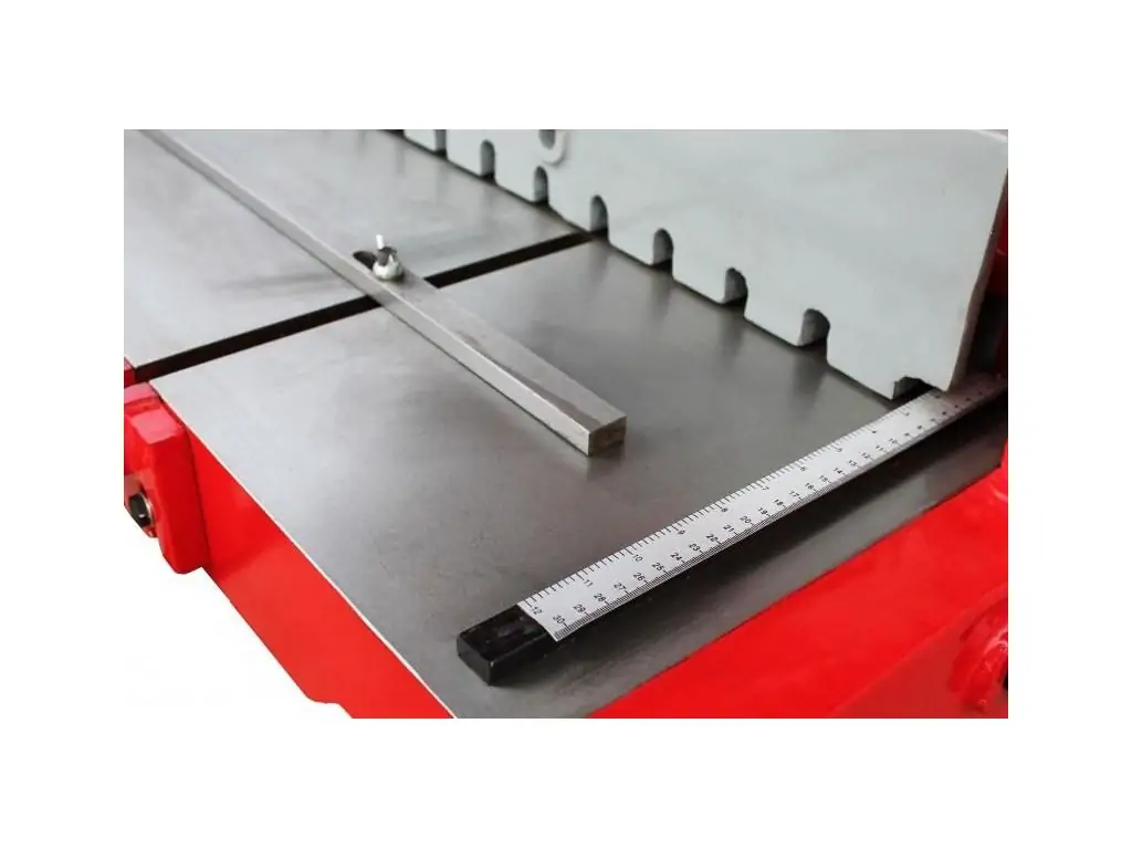 Лезвия из высококачественной легированной стали обеспечивают точный и аккуратный рез. Задний упор имеет точную регулировку до 700 мм с миллиметровой шкалой. Передний упор регулируется до 880 мм.