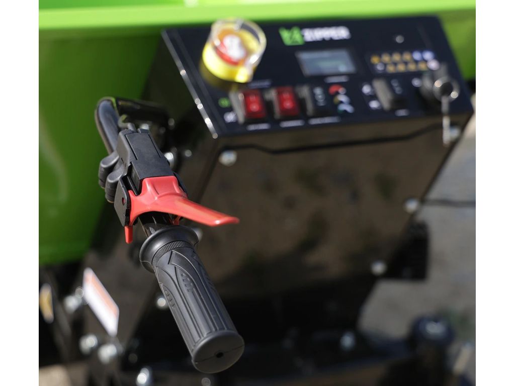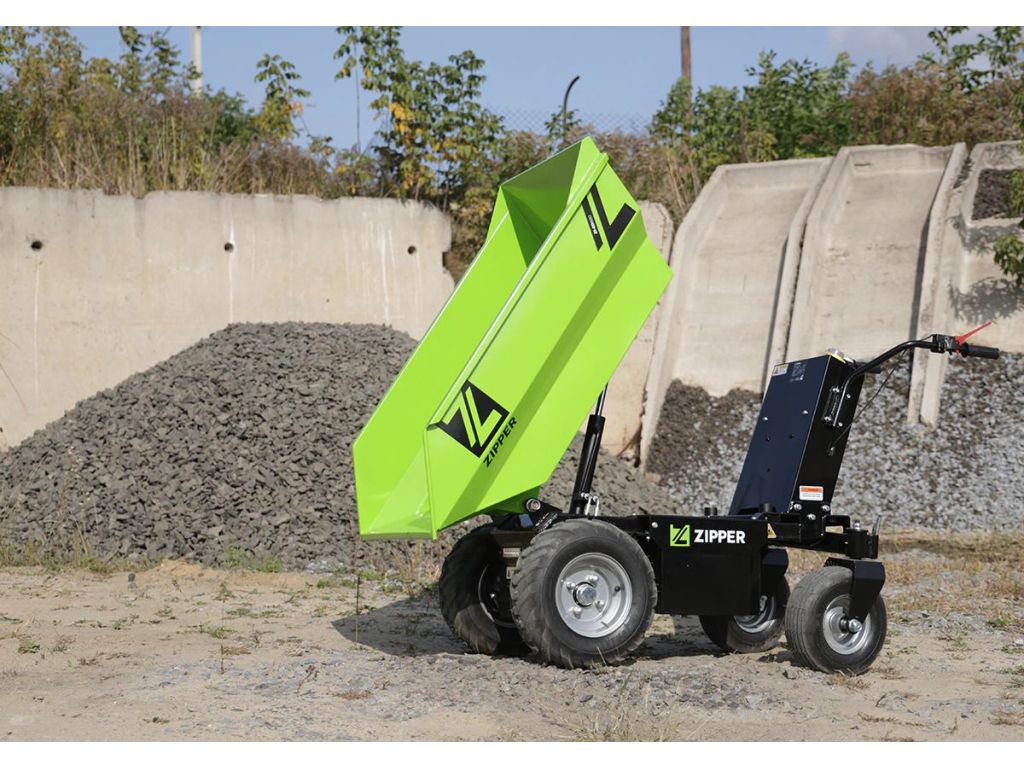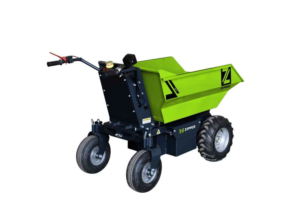 Мини самосвал Zipper ZI-ED500 предназначен для перевозки на небольшие расстояния песка, гравия, камня, земли, строительного мусора и других сыпучих материалов. Оснащен приводным двигателем мощностью 1000 Вт и двигателем гидравлического наклона и опрокидывания кузова мощностью 800 Вт. Свинцово-кислотный аккумулятор емкостью 48 В/32 Ач обеспечивает до 8 часов непрерывной работы и полностью заряжается за 7 часов.