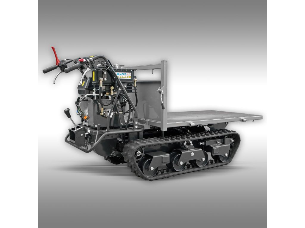 Трансмиссионная система имеет 6 передач переднего хода и 2 передачи заднего хода. Прочные резиновые гусеницы с натяжным устройством и тормозом рулевой муфты обеспечивают эффективное передвижение на всех видах рельефов, а также на склонах. Кузов имеет складные и съемные боковые стенки, что позволяет перевозить грузы разной формы и размера, используя его в качестве платформы.