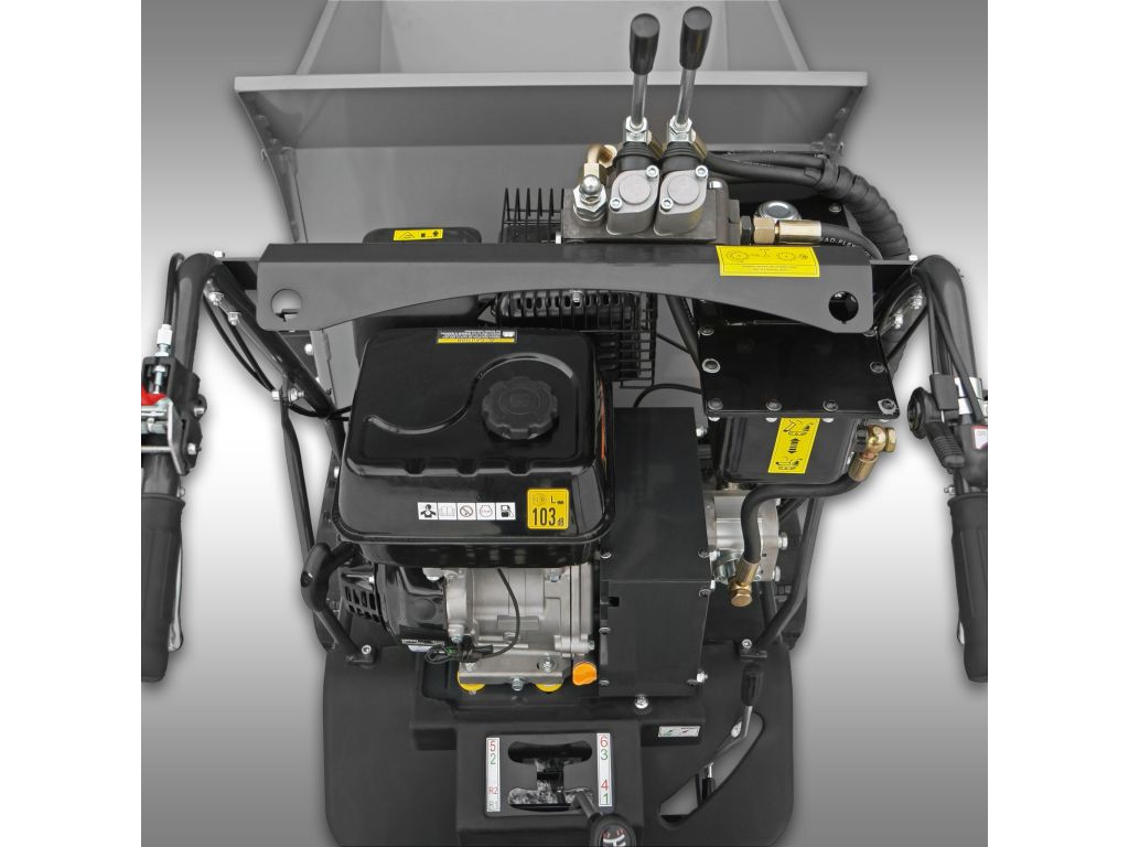 Эта модель оснащена высококачественным бензиновым двигателем мощностью 10 л.с., усовершенствованной коробкой передач (6 вперед/2 назад) и усиленным кузовом с толщиной стенки 3 мм. Гидравлический ковш позволяет быстро и без труда загружать материалы. Прямая форма желоба и его угол наклона более 90° упрощают выгрузку. Подъем и опускание занимает всего несколько секунд. Управление самосвалом простое и интуитивно понятное.