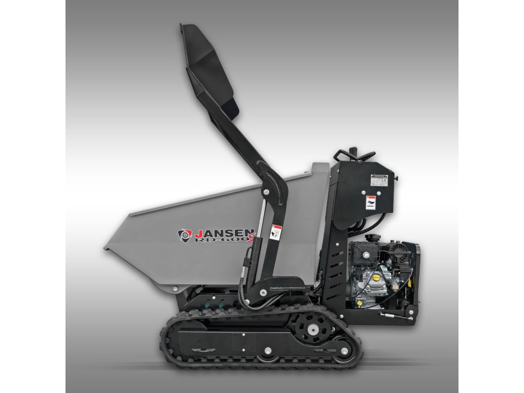 Гусеничный мини-самосвал Jansen RD-600S – это надежная и эффективная техника для транспортировки песка, почвы, гравия, камней и других материалов, которая имеет легкое управление, отличную маневренность, устойчивость и высокую проходимость на разных типах рельефов. Грузоподъемность на ровной местности составляет 600 кг, на склонах до 17% – до 450 кг, на склонах до 30% – до 375 кг. Гидростатический привод обеспечивает плавную и точную регулировку скорости, а гидравлический самозагрузочный ковш - быструю и легкую загрузку материалов.