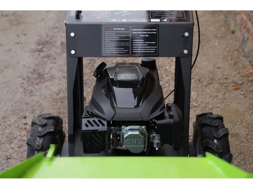 Оснащен бензиновым двигателем мощностью 3,8 кВт. Большие колеса с протекторами и колесный привод 4х4 обеспечивают передвижение по любой поверхности. Есть 4 скорости вперед, 1 нейтральная и 1 назад. Рабочая скорость – 3,78 км/ч. Для легкой выгрузки кузов откидывается вперед с помощью рычага на правой ручке. Управление этим мини-самосвалом простое, интуитивно понятное и не требует применения большой физической силы.