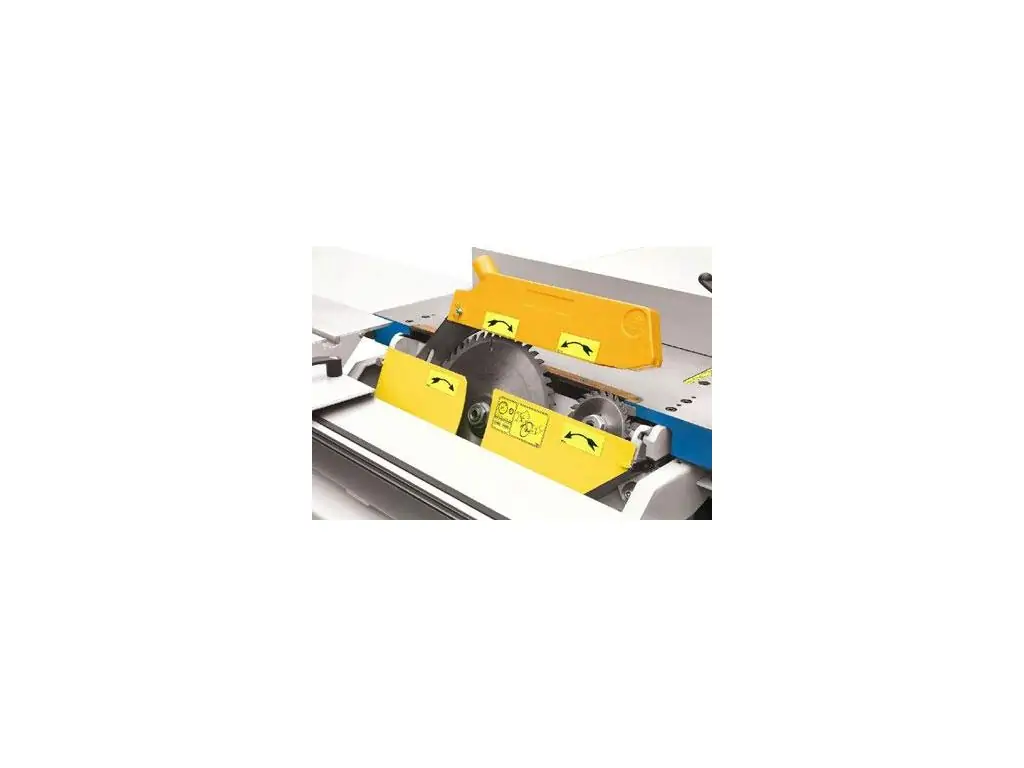 Форматный алюминиевый стол со закаленные стальные направляющие. Телескопическая линейка 1800 мм с двух поворачивающихся упоров. Линейка для параллельная резка с микрометрическая настройка. Наклонения диска до 45° со считывания по шкалу. Диаметр отверстия в столу ø260 mm с аспирационная патрубка под рабочего стола. Фрезерный шпиндель наклоняющийся сзади Морозовой конус МК4 шпинделя. Заменяемый шпиндель МК 4. Предохранитель для фрезы с диаметром ø250 mm. Ширина пропила с параллельной линейкой 1080 mm.