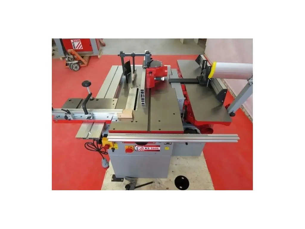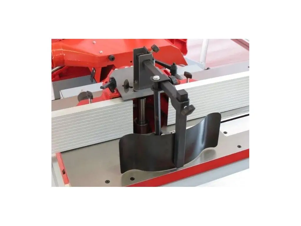 Комплект поставки: защитный кожух фрезы, угловой упор, прижимное устройство, скошенный упор с откидным упором, параллельный упор, фуговальный упор (поворот в диапазоне 90°-45°), калибр для установки строгальный ножей, инструмент для технического обслуживания.