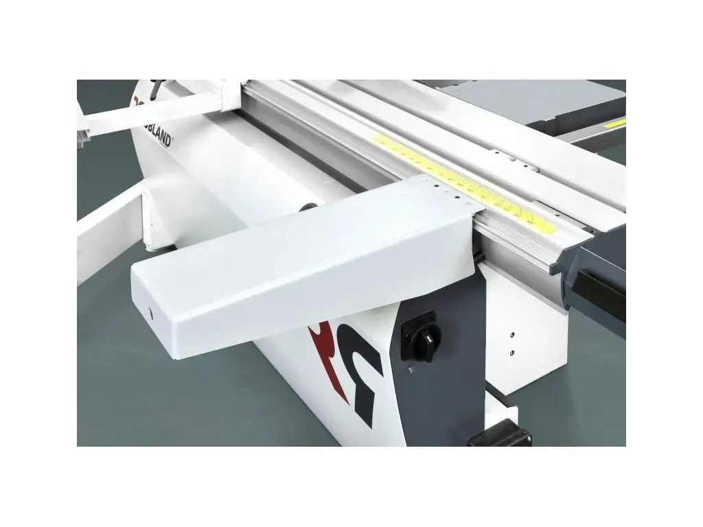 Все станки оснащены фронтальным столом с поддерживающей телескопической опорой и поперечной упорной линейкой с 2-мя откидными упорами. Это позволяет обрабатывать на станке листовые материалы, также возможно увеличение длинны каретки до 2050 мм.