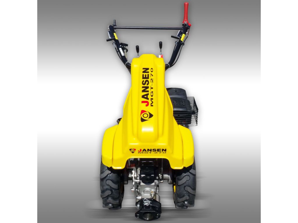 Мотоблок Jansen MGT-270 - может быть оснащен разными навесными приспособлениями, поэтому является универсальным. Эта машина подходит для работы в своем домашнем саду, а также для коммерческих целей в садоводстве и озеленении.