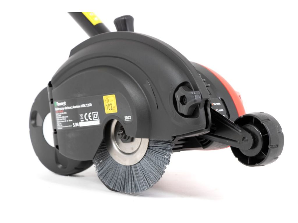 Триммер для кромки газона Faworyt HEK1200 с дополнительной щеткой для затирки и очистки швов 2W1 подстригает и выравнивает края газона, а также подрезает и очищает швы и затирку после замены лезвия с помощью нейлоновой круглой щетки.
