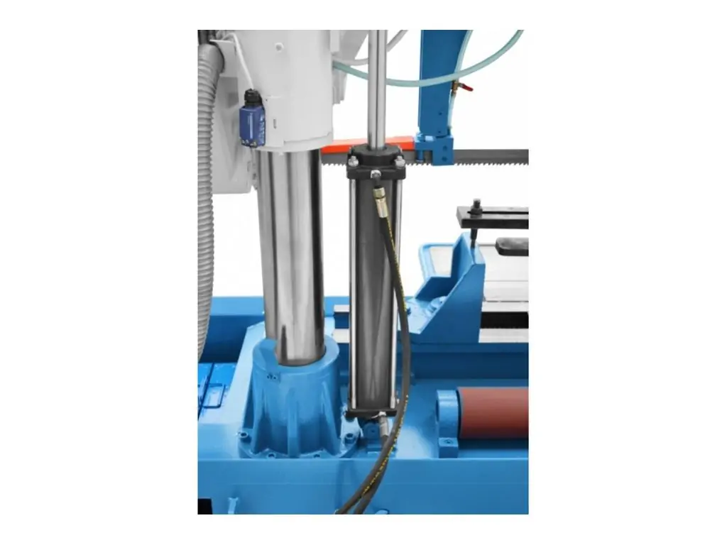 Подача в значительной степени контролируется гидравлическим дроссельным клапаном. Регулируемая сила давления пилы на материал предотвращает перегрузку ленты, тем самым продлевая срок ее службы.