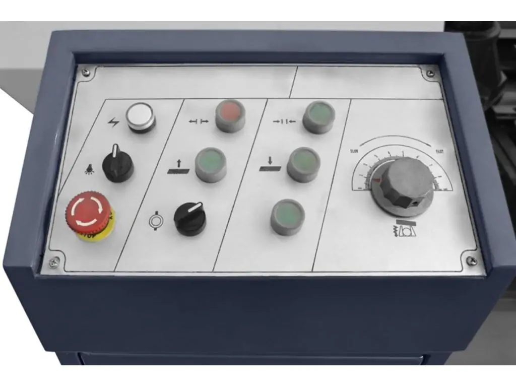 Опускание головы – гидравлическое с плавной регулировкой, что гарантирует равномерность и контролируемость подачи. Автоматический возврат головы после окончания резки сокращает время на перенастройку. Гидравлические тиски обеспечивают стабильный и равномерный зажим по всей ширине детали. Три скорости движения ленты (40/ 60/ 80 м/мин) позволяют оптимизировать параметры распила под тип материала. Также эта пила по металлу полуавтомат оснащена системой охлаждения СОЖ и щеткой для очистки полотна, а ее двухколонная конструкция обеспечивает стабильность даже под максимальной нагрузкой.
