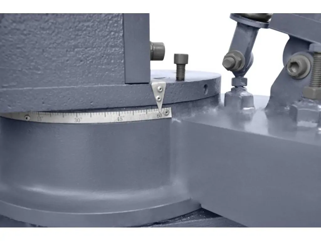 • Массивная пильная рама, изготовленная из чугуна, обеспечивает высокую жесткость и стабильность при резке, что приводит к точности резки и длительной бесперебойной работе.