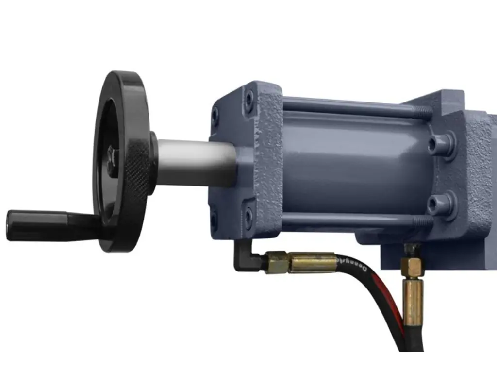 • Регулировка опускания пильной рамы при резке осуществляется через настройку гидроцилиндра и достигается благодаря клапану, регулирующему поток масла между камерами цилиндров.