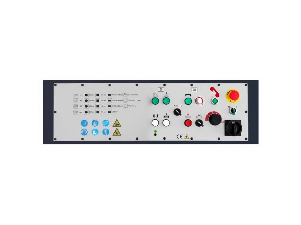 - Дополнительная панель для регулировки скорости опускания ножовки с предохранительным выключателем.